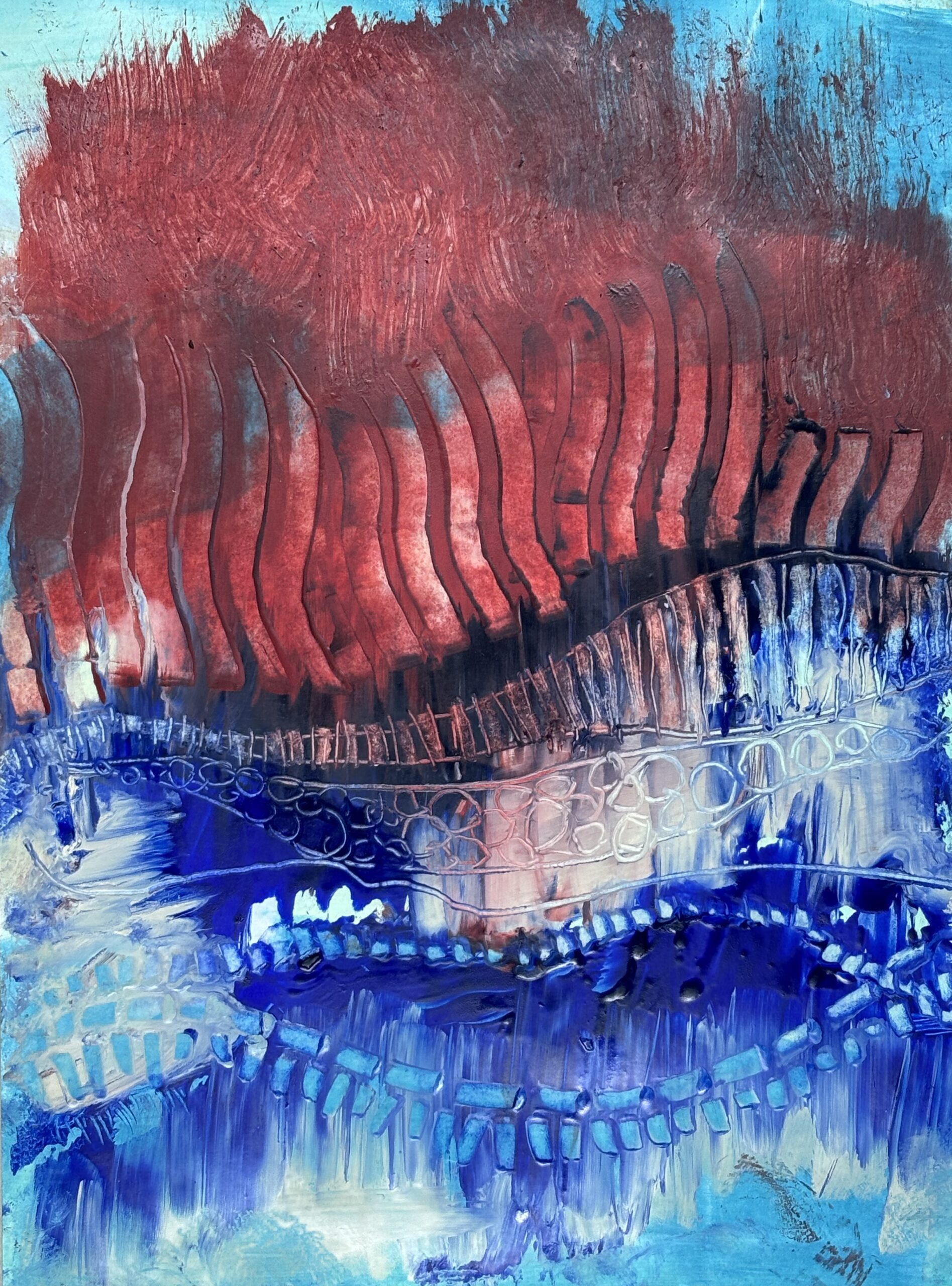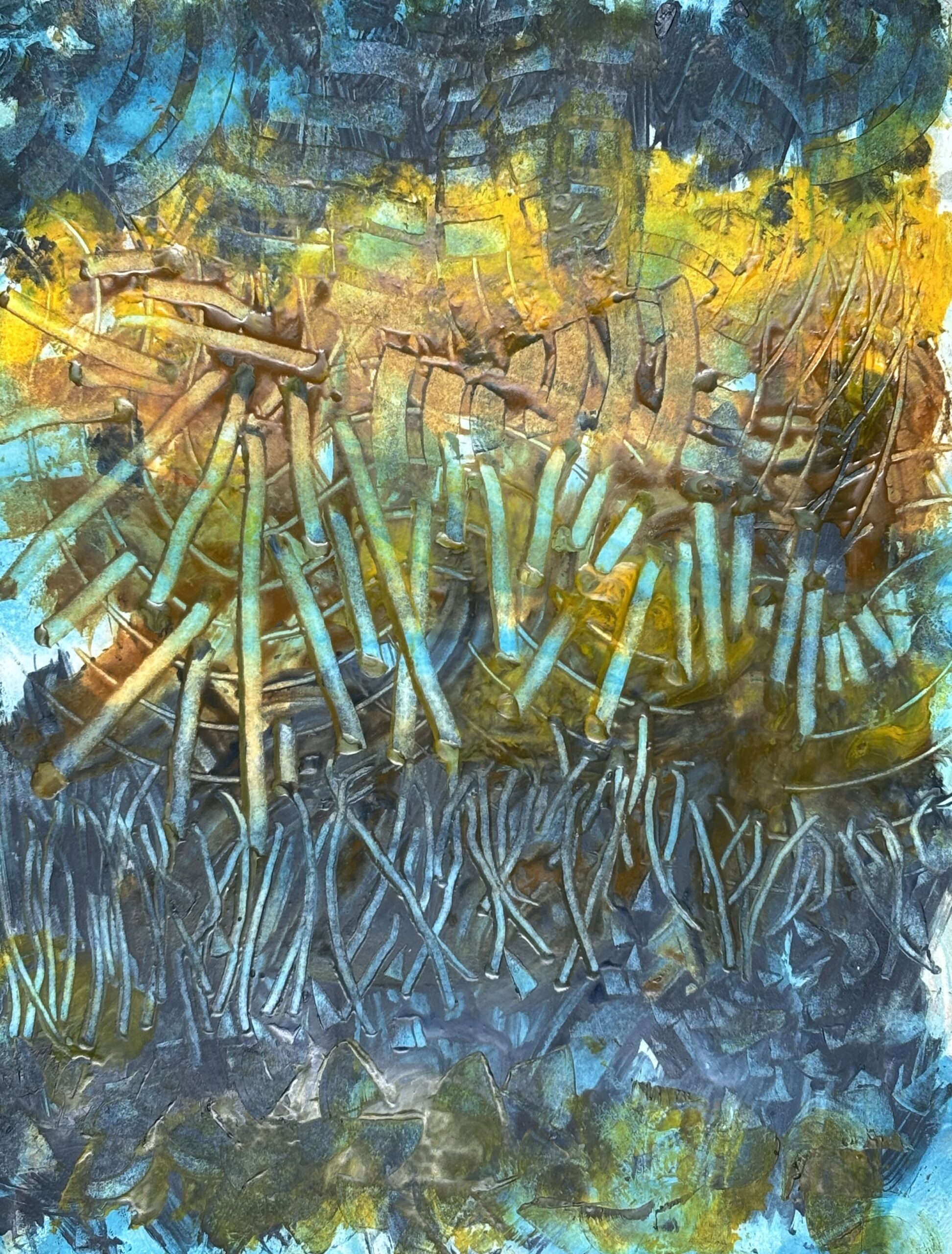 These same values guide my art. I’m drawn to layers, nuance, and tension—spaces where opposites meet and something new emerges. My encaustic monotypes reflect this search for common ground and deeper understanding, both within the work and within ourselves.