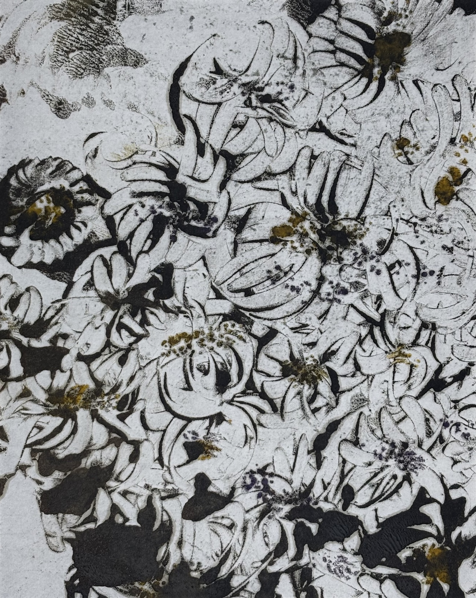 When the image is ready, I place paper over the plate and apply light pressure to transfer the painting. Peeling it back reveals a reversed impression—often with unexpected nuances that only heat and wax can create. I may repeat the process to build additional layers, deepening the color and complexity.
